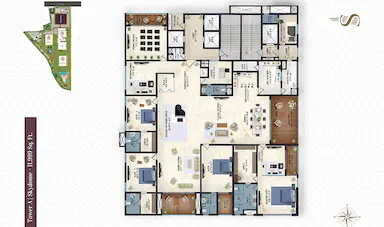 Candeur Skyline offers exclusive 4 BHK apartments in the Financial District, designed as private sky villas. Each residence comes with expansive layouts, soaring ceilings, and panoramic views, ensuring unmatched privacy and luxury.